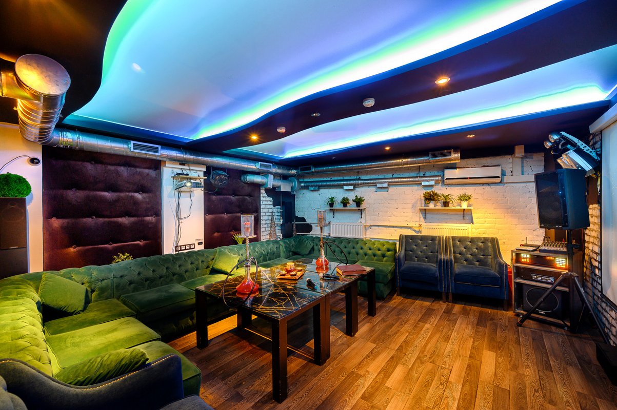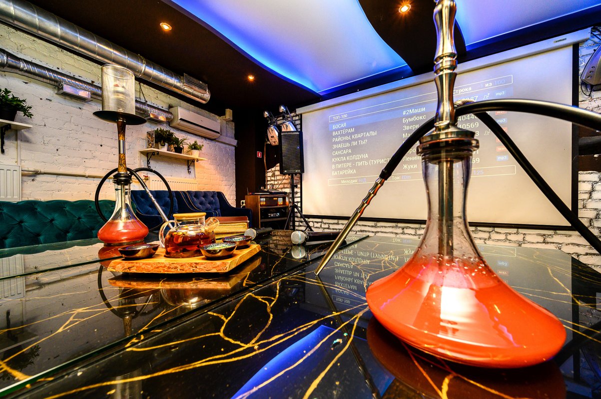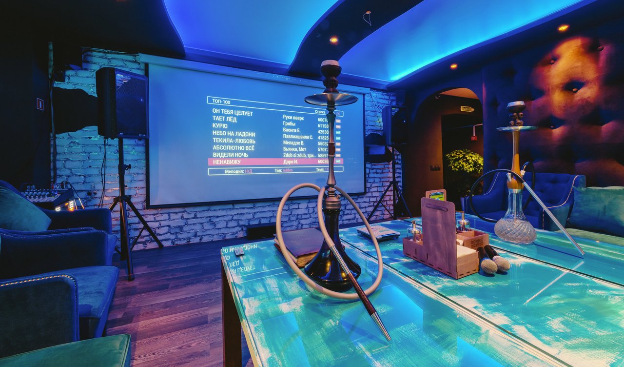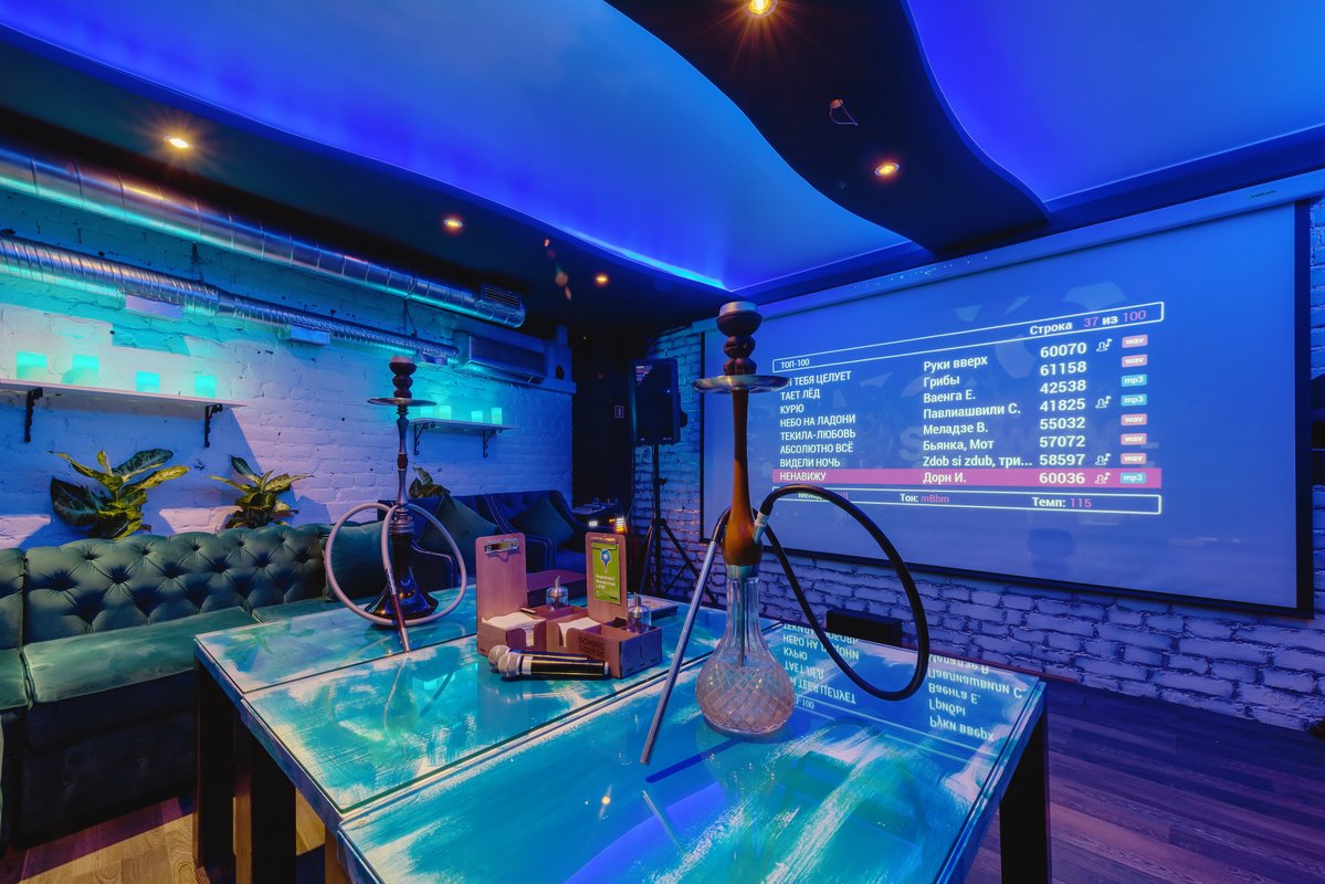 В кальянной, на мой взгляд, не очень удобное расположение столиков. Мы сидели прям у выхода, двери постоянно не закрывались, было холодно. Потом мы пересели в караоке-комнату, где 40% песен не проигрывались. Нам никак не могли их настроить.