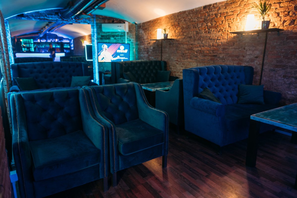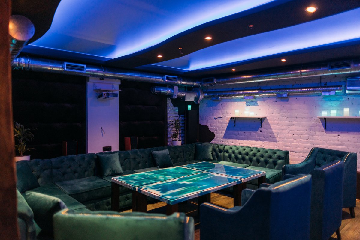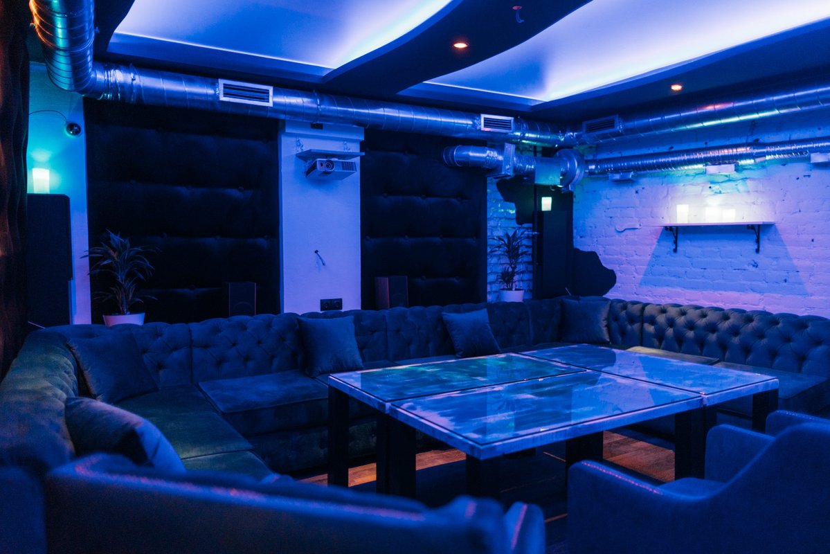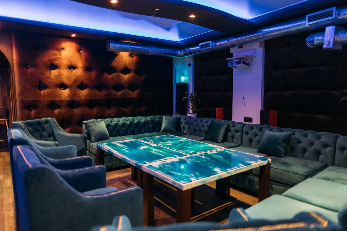 В кальянной, на мой взгляд, не очень удобное расположение столиков. Мы сидели прям у выхода, двери постоянно не закрывались, было холодно. Потом мы пересели в караоке-комнату, где 40% песен не проигрывались. Нам никак не могли их настроить.